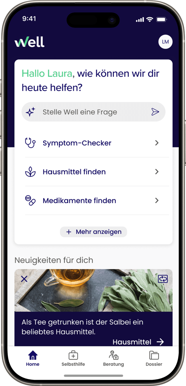 Well hat grosse Ziele. Wir möchten, dass du dich besser selbstständig um deine Gesundheit und dein Wohlbefinden kümmern kannst. Dazu bieten wir dir Fachwissen und den Zugang zu einfach nutzbaren Dienstleistungen.
